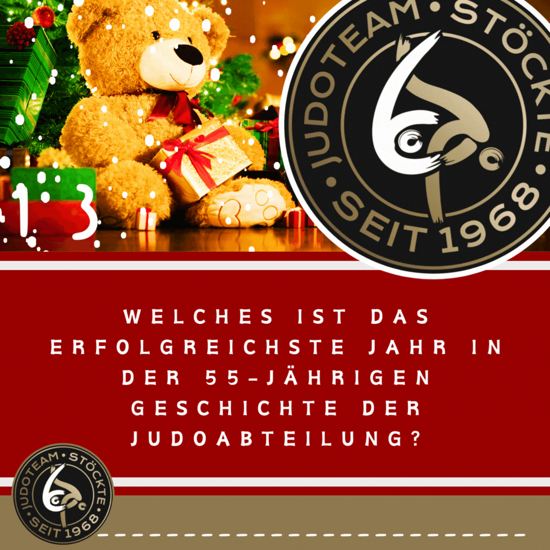 Bald beginnt die Adventszeit und auch dieses Jahr gibt es wieder unseren Judo-Adventskalender. Jeden Tag könnt ihr ein Türchen öffnen. Dahinter findet ihr eine Frage zum Judo, zum Verein oder eine kleine Überraschung. So habt ihr jeden Tag etwas zum Staunen und Lernen.