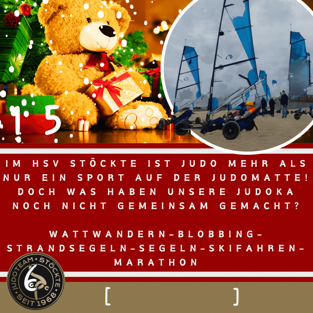 Wenn ihr schon 15 Türchen bis zum 18.12. geschafft habt, könnt ihr euren Preis schon am 19.12. im Training abholen.
