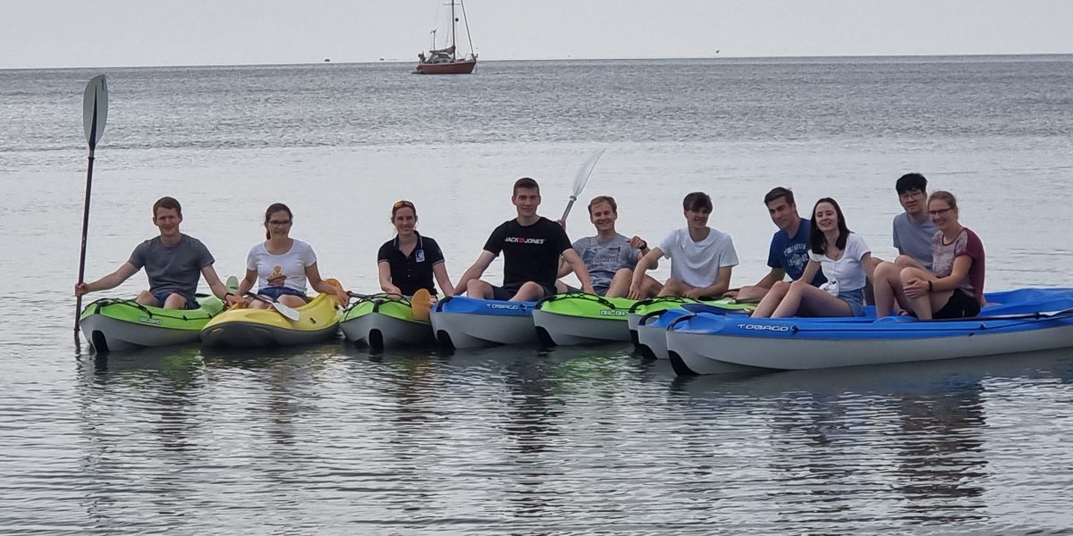 Am Sonntag sind wir bereits um 09:30 Uhr an den Strand von Kellenhusen gefahren, um dort eine Stunde Frühsport im Kajak zu machen, bevor es wieder nach Heiligenhafen ging. Dort angekommen, haben wir uns testen lassen (zumindest diejenigen, die sich testen lassen mussten) und haben ein frühzeitiges Mittagessen zu uns genommen.